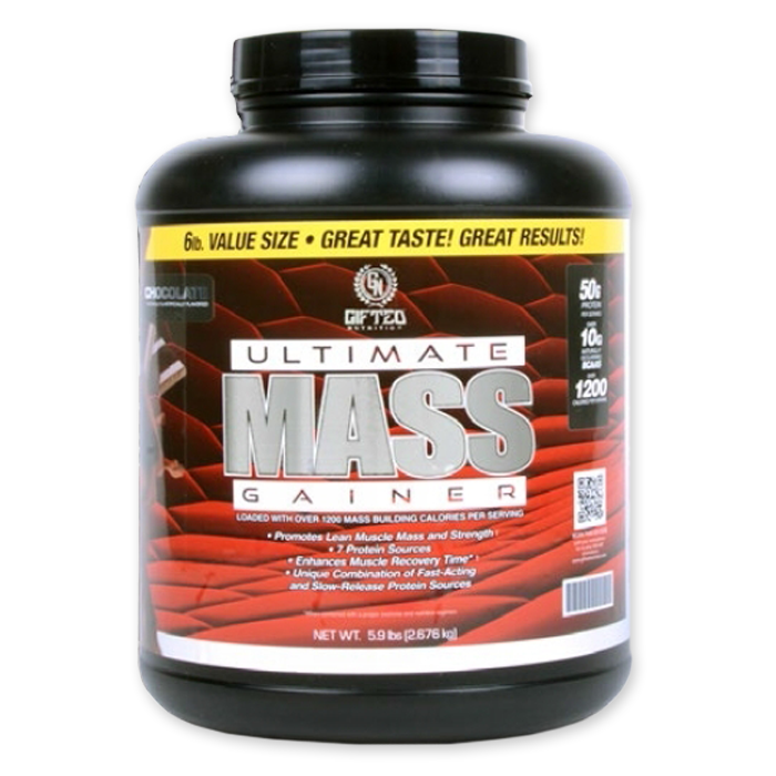Gifted Nutrition Ultimate Mass Gainer - углеводно-белковая смесь. Данный продукт специально разработан для людей, которые нуждаются в дополнительных калориях, максимально полезных и эффективных в процессе набора мышечной массы, и в дополнительных питательных веществах, способных повысить скорость метаболизма. Gifted Nutrition Ultimate Mass Gainer содержит в своем составе белковый комплекс длительного поглащения, который питает мышцы на протяжении нескольких часов после приема. Также в Gifted Nutrition Ultimate Mass Gainer содержится комплекс углеводов, питающий мышцы полезной энергией. Кроме того, Ultimate Mass Gainer от Gifted Nutrition обогащен аминокислотами с разветвленной цепочкой (BCAA) для сохранности положительного баланса азота, пищевыми волокнами для лучшего усвоения питательных веществ.